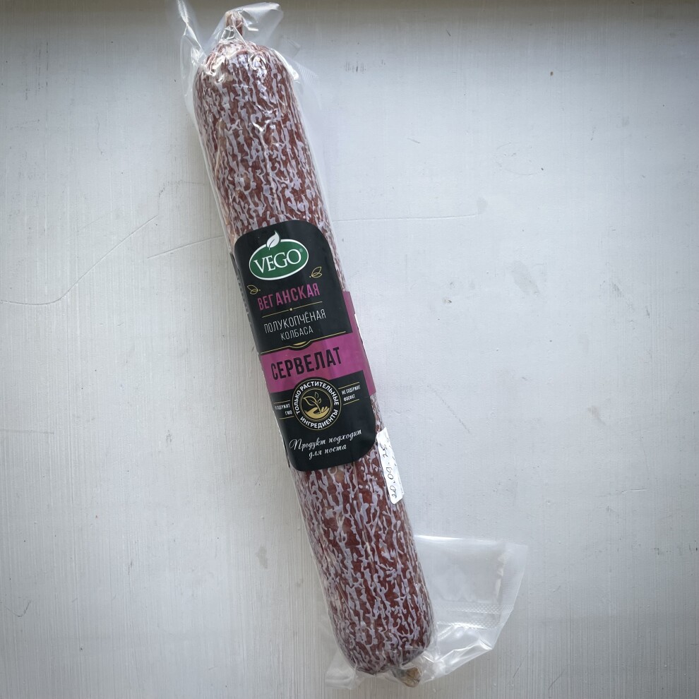 Не содержит мяса и ГМО. Идеальна для постного питания. Имеет натуральный копчёный вкус сервелата