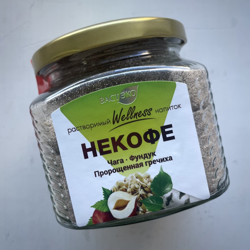 Состав: концентрат из пророщенной ферментированной зеленой гречки, кокосовое молоко сухое, напиток растворимый злаковый ячменный, кукурузная клетчатка, экстракт чаги, цикорий растворимый, сухие сливки, экстракт фундука.